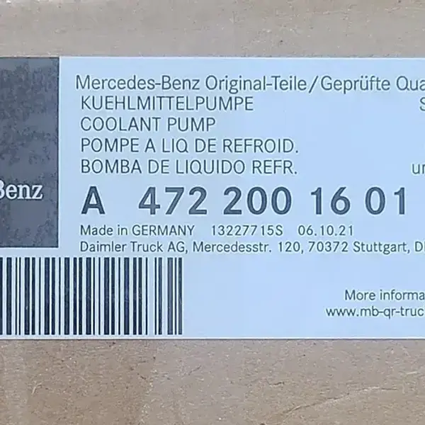 Genuine EA4722002801 Water Pump: Get the authentic Mercedes-Benz water pump with part number EA4722002801 for your Freightliner Cascadia.